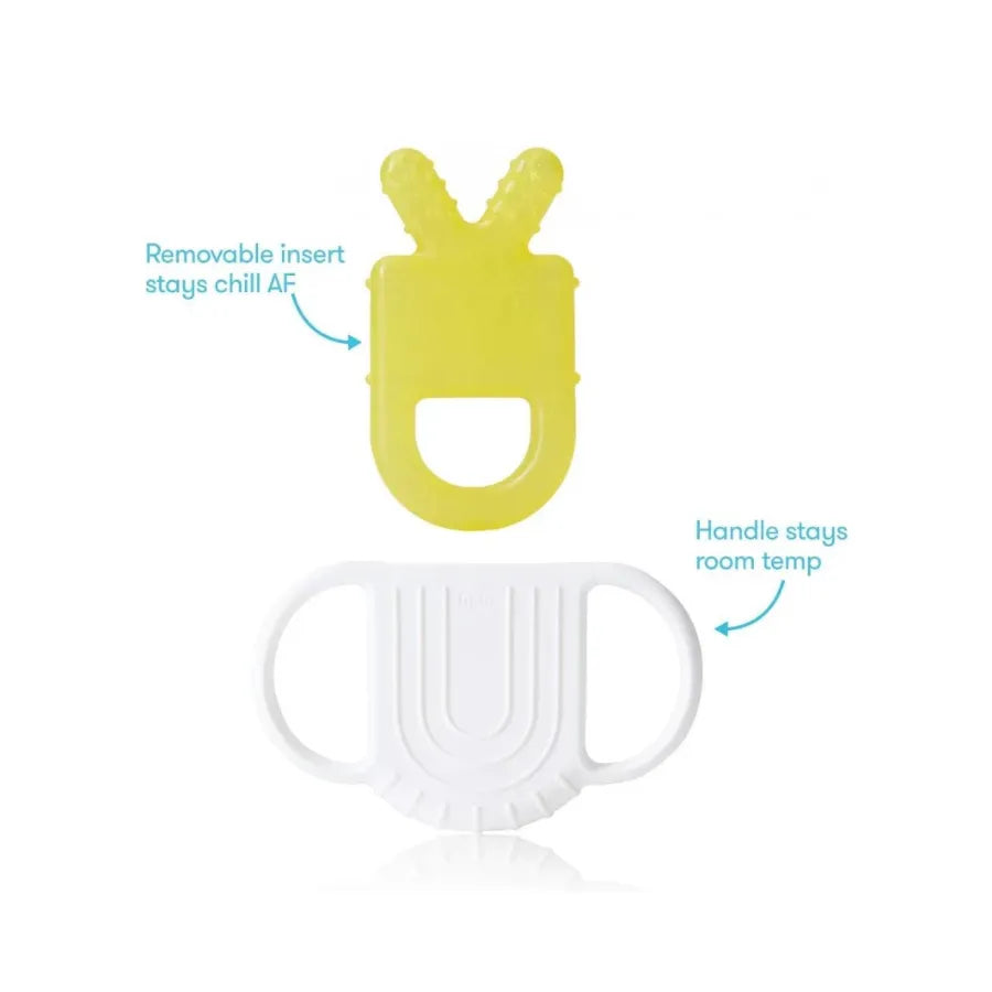 عضّاضة التسنين غير الباردة للإمساك للأطفال FRB 023 مصممة بعناية لتهدئة لثة الطفل دون أن تصبح يدا الطفل باردة أو غير مريحة. تتميز بمقبض آمن يبقى بدرجة حرارة الغرفة لسهولة الإمساك، مع قطعتين مزدوجتي الجوانب قابلة للتبريد لتدليك اللثة ومصنوعة من سيليكون خالٍ من BPA. توفر الجوانب الأربعة أشكالًا وملمسًا مختلفًا لتدليك اللثة الأمامية والخلفية ودعم راحة الطفل أثناء التسنين.